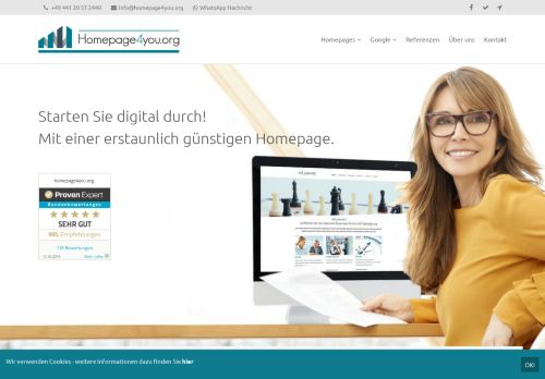 Moderne Homepages für kleine und mittelständische Firmen. Für alle, denen ein Homepagebaukasten zu kompliziert und eine Werbeagentur zu teuer ist! Keine Vertragslaufzeiten, Suchmaschinenoptimierung (SEO), Mobil optimiert und beliebig erweiterbar. ...