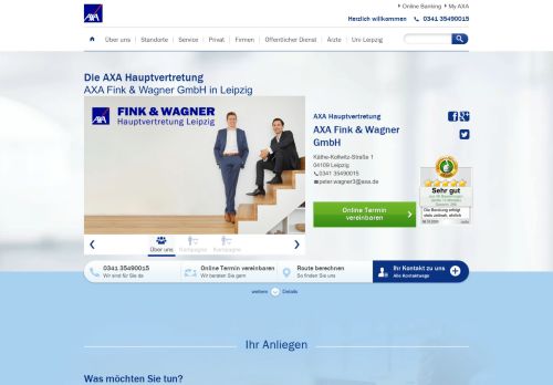 Die AXA und DBV Leipzig Fink & Wagner GmbH ist Ihr Versicherungsvertreter in Leipzig für Versicherungen der AXA und DBV (Deutsche Beamtenversicherung). Wir vermitteln Versicherungen für Privatkunden, Geschäftskunden, den Öffentlichen Dienst und Beamt ...