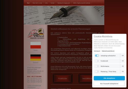 Przysregly/Tlumacz - Seit mehreren Jahren biete ich professionelle Dienstleistungen als Sprachmittler: Dolmetschen, Hilfestellung und Begleitung bei persönlichen Angelegenheiten, Übersetzungen mit dazugehöriger Beglaubigung, Fremdsprachenkorrespondenz, aber auch Sprachunterricht.